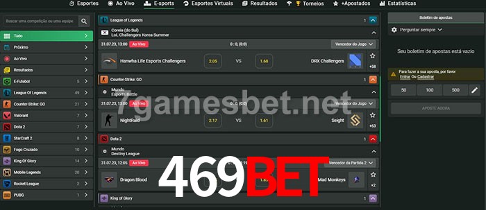 O 469Bet oferece uma grande seleção de opções de apostas em e-sports com probabilidades competitivas